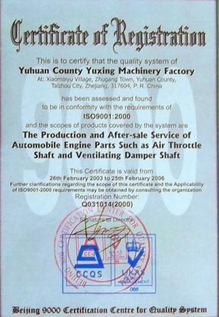 浙江玉环县玉兴机械制造有限公司创办于1984年5月,是一家专业从事各类汽车、摩托车零配件生产的企业。我厂与重庆长安、四川红光、哈尔滨、东安等国内外多家著名品牌企业长年配套合作,我厂的产品质量及优质服务深受各协作单位及同行的青睐。我厂现已通过ISO9001质量认证,‘质量是企业根本’是我们的质量原则,"务实、求精、开拓、进取"是我们的企业宗旨。我们将时刻遵循着我们的原则和宗旨,生产具有高可靠性、高稳定性的产品,使我们的产品满足您的要求、给予您101%的质量保证。 我们的主要产品有:汽车系列电喷节气门、阀体节气门轴、化油器轴摩托车系列电喷阀体节气门轴、化油器轴 D38、D50、D60、D24等各型号节气门轴摩托车电喷节气门轴等。 我厂座落于风景秀丽的国家二类港口——大麦屿港附近的大麦屿经济开发区。地理位置得天独厚 ,交通便利。