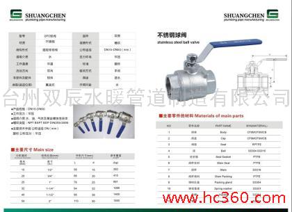 台州双辰水暖管道制造有限公司地处环境优美,交通便利的“中国阀门之都”浙江玉环,公司成立于2004年12月,厂房面积3500多平方米,公司管理机制严格按现代企业管理制度运营2009年通过了ISO9001国际标准质量体系认证、 CE认证,荣获集生产、销售、服务为一体的专业化生产商,主要产品有不锈钢球阀、中高档排气阀、止回阀、软管以及水暖配件产品。在生产运营过程中严格按照ISO9001质量管理体系、6S管理体系运行。对产品的设计、生产质量检测进行全过程控制,严格按照程序广泛用于建筑、装饰、空调、自来水、太阳能等各行业,品种多、规格全、外型美、性能佳、品质优等特点。深受国内外客户的表昧和信任!本公司始终坚持以“品质优先、创新求精,持续发展,回馈社会”的经营理念,深受国内外客商的青睐和信任。