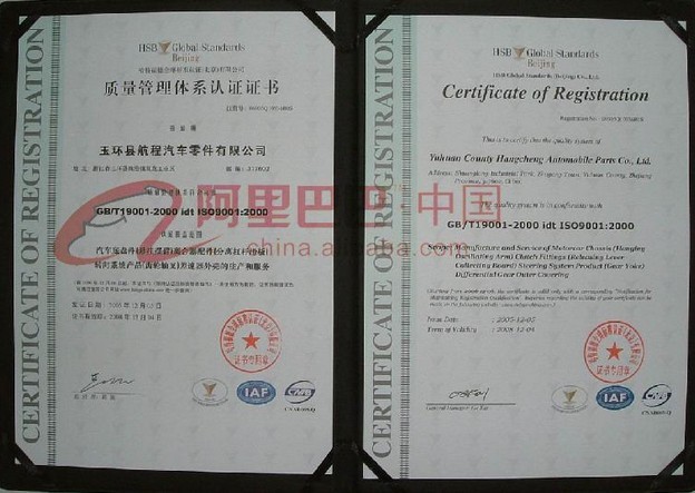 浙江省玉环县航程汽车零件有限公司自1996年创建以来,一直致力于开拓海外市场,专业生产出口各类汽车零件和其他机械零件,随着产品不断开发,技术在不断创新,设计、生产、管理、检测手段在不断加强。企业已通过ISO9001:2000质量管理体系认证。