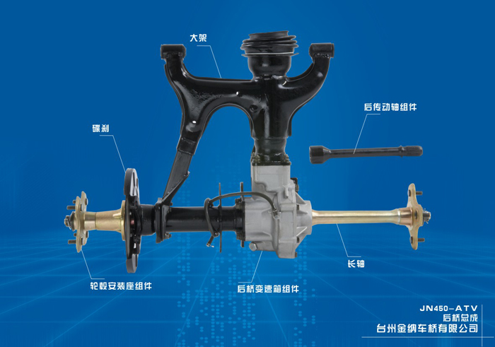 目前我司现有的车桥型号有:JN350-ATV(鼓刹),JN450-ATV(碟刹),JN500-ATV(碟刹),JN700-ATV,JN700-ATV,JN700-UTV,JN800-ATV,高尔夫车桥等。我们可以根据客户要求开发生产各种车桥总成,我们的产品销往国内以及欧美国家,得到客户的一致好评,并多次被授予“优秀供应商”。