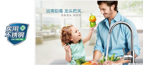 全新研发的苏泊尔不锈钢水龙头系列产品,不仅设计美观大方,而且经久耐用、不易生锈,是国内首家取得饮用水卫生许可证的不锈钢水龙头。目前该系列产品已先后获得中国质量认证中心的“中国节水认证”,以及多项国家专利。