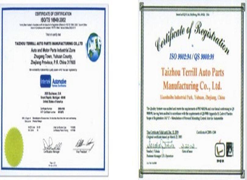 公司已通过QS9000、ISO/TS16949国际汽车质量体系认证。经过多年的努力,企业得以不断的发展,公司目前主要配套厂家有:北京现代、华泰现代、江西五铃、昌河铃木、长安汽车、重庆力帆乘用车、比亚迪汽车。我公司生产的产品覆盖欧系、美系、日系、韩系等各大类汽车零部件,公司的年综合生产能力达80万套。产品远销东南亚、中东、欧美等国际市场。