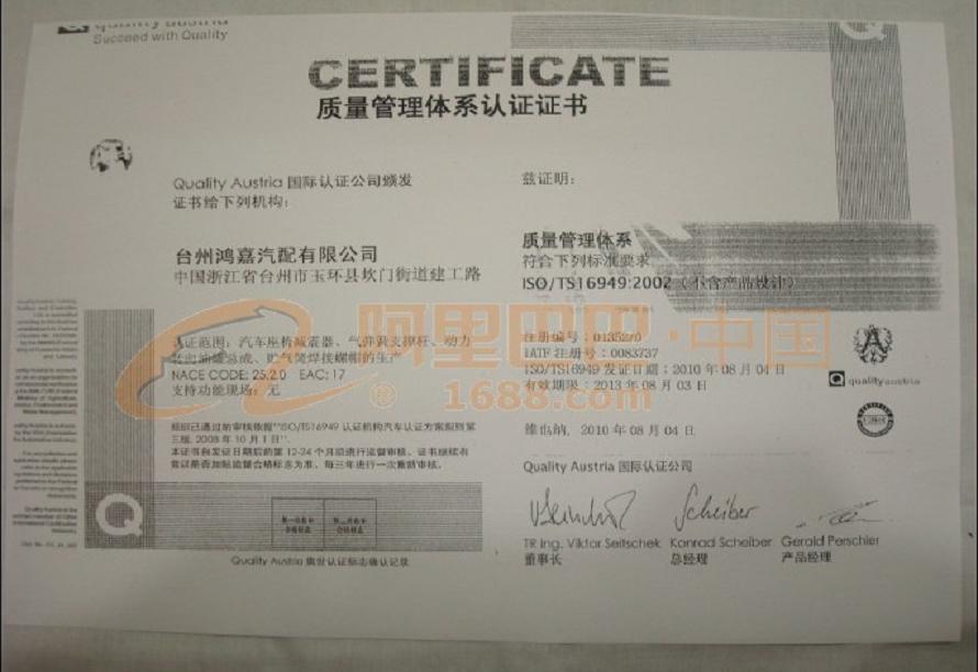 台州鸿嘉汽配有限公司公司位于拥有中国首家汽摩配制造基地美誉的浙江省玉环县,是一个经济比较发达的县,水陆交通极为方便。