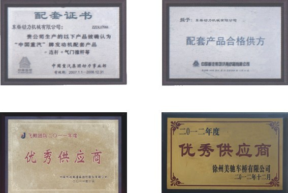 2001年,企业获得ISO9000(2000版)质量体系认证。企业曾多次被评为“质量信得过企业”、“级工业企业”、“中国汽配行业名优企业”、浙江省工商信用“守合同重信用”单位称号。