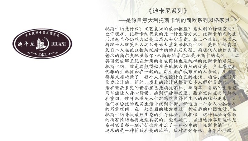 一直以来,公司始终坚持“管理以人为本、合作创造价值”的工作方针,变短积累深厚的管理基础和文化底蕴,以“踏实勤奋,诚信为本”的企业作风,精心打造“喜福”的品牌文化。公司不但拥有先进的专业木工机械和喷涂设备,而且具有一支高素质、新概念的设计开发和生产管理的专业队伍,制造技术和工艺水平堪称一流。公司生产的“喜福”牌系列家具是按照西方先进设计观念和古典风格精雕细琢而成,在设计上追求古典的高雅尊贵和现代的时尚简约,在用材上追求绿色环保和品质上乘,在风格上追求品味独特和表现优越,代表了欧美家具传统与时尚的完美结合,是给用户带来具有现代最新潮流气息的家具产品。公司以“寻求客户心灵的满足”为己任,通过科学的管理手段,严格的品质控制盒优良的售后服务,为客户提供满意的家具产品,满足客户多方面的需求,赢得了国内外客户的好评和信赖。公司全面实施IS9001:2000国际质量体系,严格按照体系标准,不断强化产品质量管理,加强材料采购、生产过程、产品标示、包装储存等环节的质量控制,确保产品质量合格并长期稳定,使客户用得放心,用得满意。公司将进一步完善企业管理、产品设计、制造工艺和营销服务,扩大生产、制造规模,以满足市场和顾客的需要。