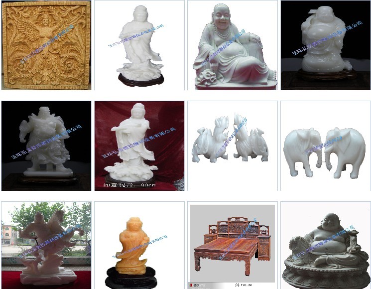 玉环弘法数控是一家经国家相关部门批准的机械及行业设备的企业。为了实现科技兴厂,本公司历经三年,耗资800万,自主研发四轴木工立体雕刻机系统,开发四轴木工雕刻软件,均已获得发明专利(专利号:ZL200710070557.2,ZL200720113477.6,ZL200810060107.X,ZL200820083901.1),产品全面通过ISO9001国家质量体系认证。公司主要生产大型旋转立体雕刻机,多头旋转雕刻机小型1-12头旋转数控雕刻机,主要雕刻人体塑像、佛像、仿古雕刻、家具、汉白石、立体雕刻。适合于各佛像生产企业,仿古家具厂等工艺品生产企业。本公司提供全面的生产技术服务,采取世界先进激光扫描仪器,配合用户完成高难度产品的建模,适应加工需要,产品畅销全国各地。