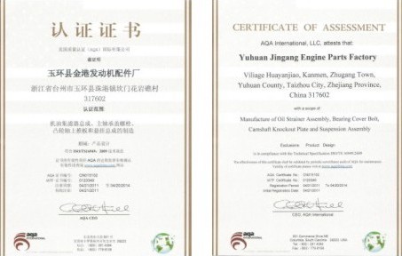 玉环市金港发动机配件厂创建于一九九五年,座落在美丽富饶的海港城市浙江玉环,交通便捷。本公司专业生产冲压件、总成件、高强度螺栓;现有员工87人,其中管理人员和技术工程人员16人,经营制度完善,管理机构键全,生产技术力量雄厚,建立了高效的质量管理体制。